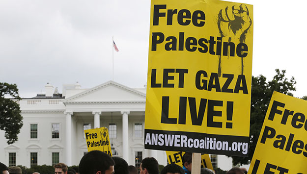 Thousands of protesters gather during a rally to demand an end to the conflict in Gaza, outside the White House in Washington Twitter Facebook Email