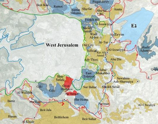 The construction in Har Homa E will solidify a continuum of Israeli settlement construction within the southern perimeter of East Jerusalem – from Har Homa, to Givat Hamatos, to Gilo – detaching East Jerusalem from Bethlehem and completing the encirclement of the Palestinian East Jerusalem neighborhood of Beit Safafa.