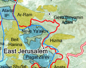 The plan aims to connect large settlements in East Jerusalem (Neveh Ya’akov and Pisgat Zeev) with an isolated settlement in the West Bank (Adam, aka Geva Binyamin). The land identified for the project is within the municipal boundaries of Adam, but on the Israeli side of the separation barrier (the route of the separation barrier in this area cuts deep into the West Bank). If implemented, the Adam settlement would have built up areas on both sides of the barrier.