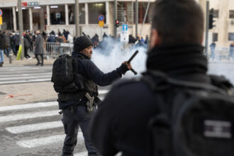 Israeli police attack Palestinian worshippers praying in the streets outside the Old City of Jerusalem (Al-Quds), as the Al-Aqsa Mosque remains closed by the Israeli authorities, 20 March 2026. The police used tear gas, stun grenades and batons. Today marks the start of the Muslim festival of Eid al-Fitr, and the first morning prayer of Eid al-Fitr holds particular significance for Muslims. Amid heightened restrictions due to the US–Israel war against Iran, this marks the first prolonged closure of the Al-Aqsa compound since 1967, other than during the pandemic.